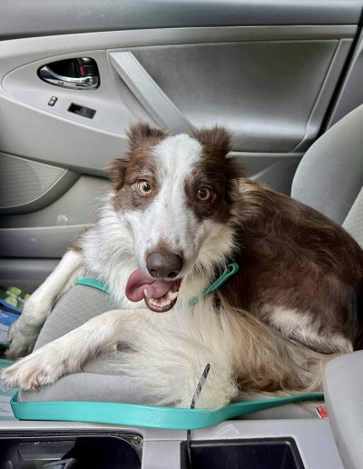 - Quick to learn: Sadie is making great progress on not rushing out an open door and will need ongoing work. She’s a smart girl who knows “Sit,” “Down,” and “Lay Down” and is ready for a patient family to continue her training.